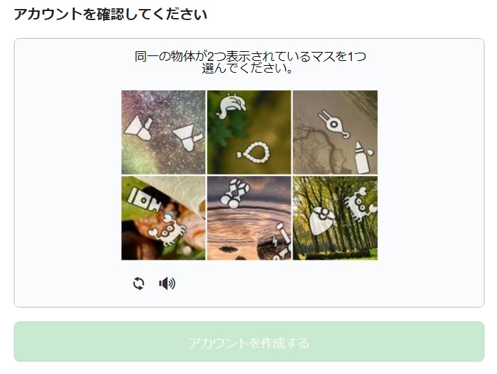 アカウント名・メールアドレス・パスワードの設定ロボットか判別する質問がありますので回答してください。