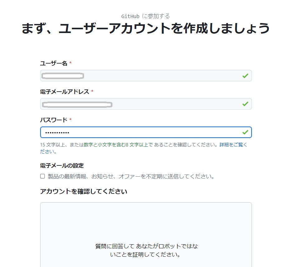 質問が完了したらアカウントを作成するをクリックすると、下画像の画面に移動します。