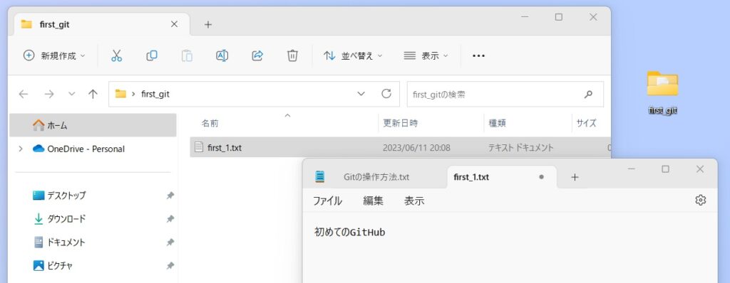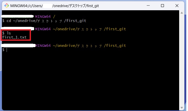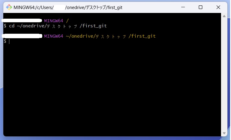 デスクトップに移動できましたら、先ほど作成したfirst_gitフォルダーに移動します。