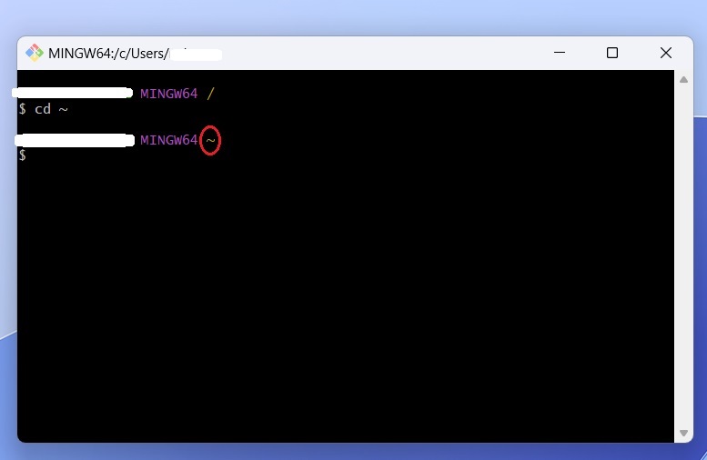 まず、Git Bash に 「 cd ~ 」と入力します。