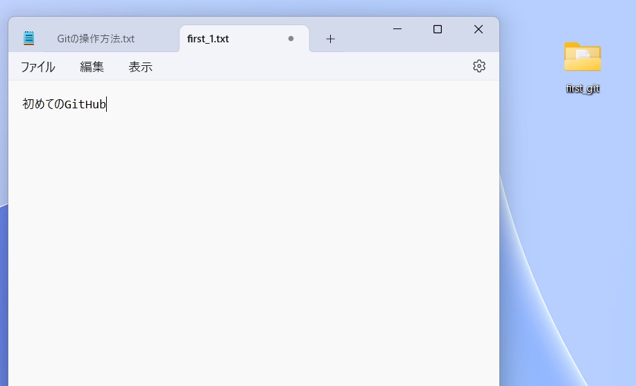 画像では、first_1.txt と付けました。(ファイル名はなんでもOKです。)