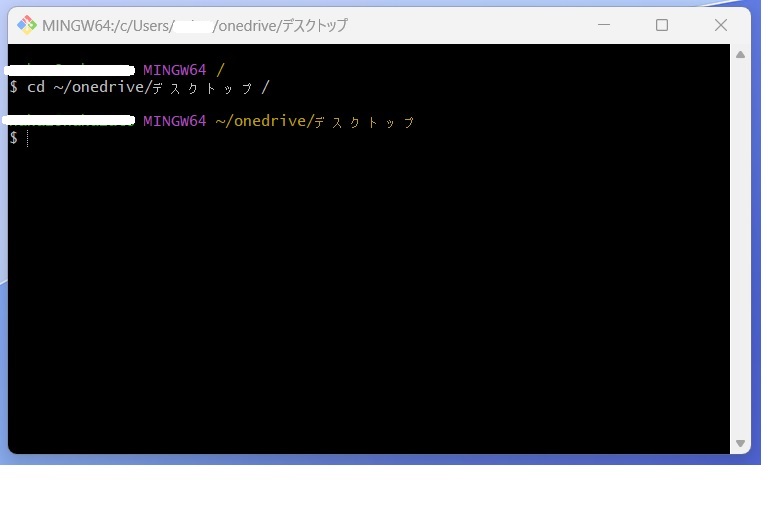 「 cd onedrive 」と入力した後「 cd デスクトップ 」と入力します。