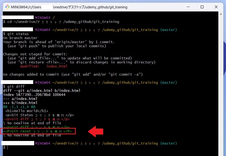 「Git reset コマンドを実行」と追記して保存してください。