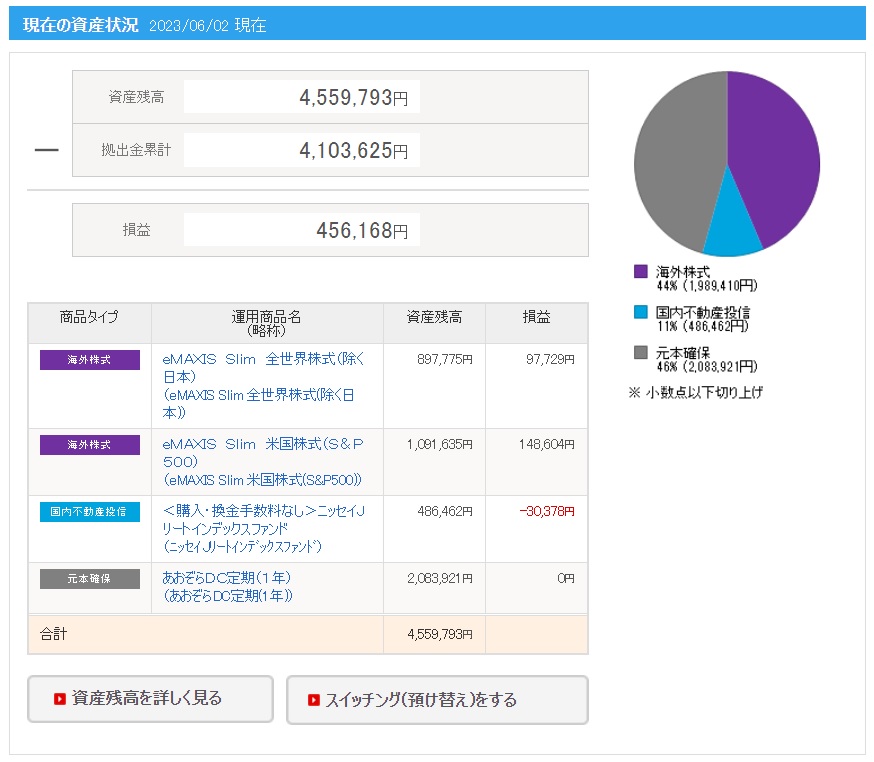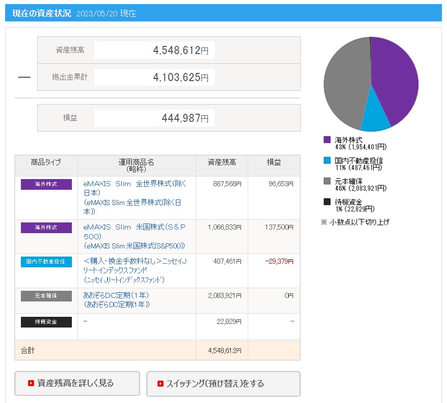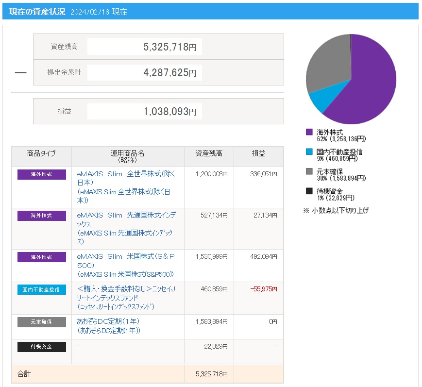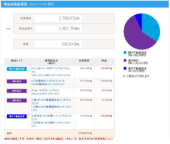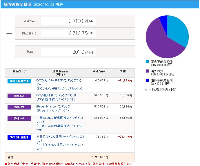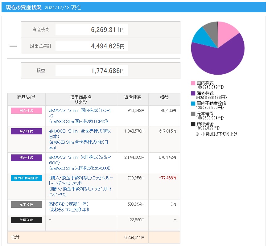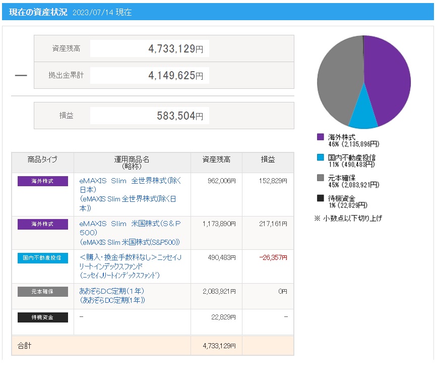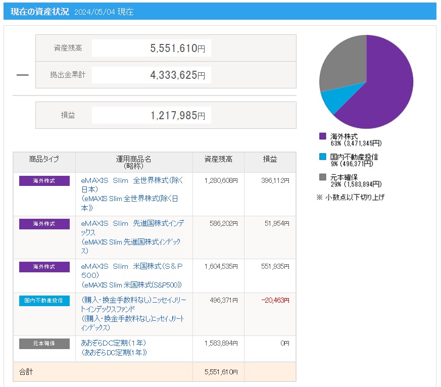 ※画像の拠出金額や損益(運用利益)と上記に記載した拠出金額や運用利益(損益)の金額が異なっている理由は、別記事にて解説していますので興味がある方は下記リンクよりご確認ください。