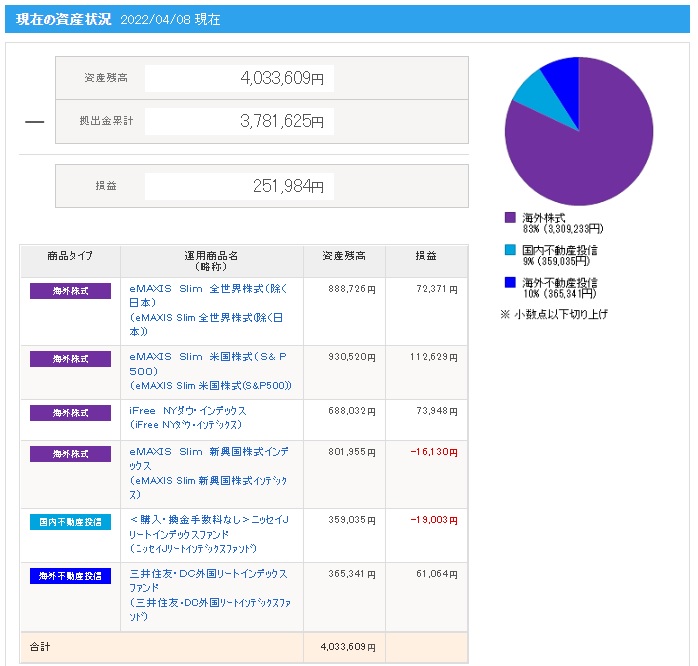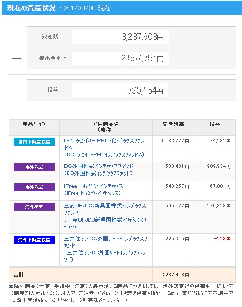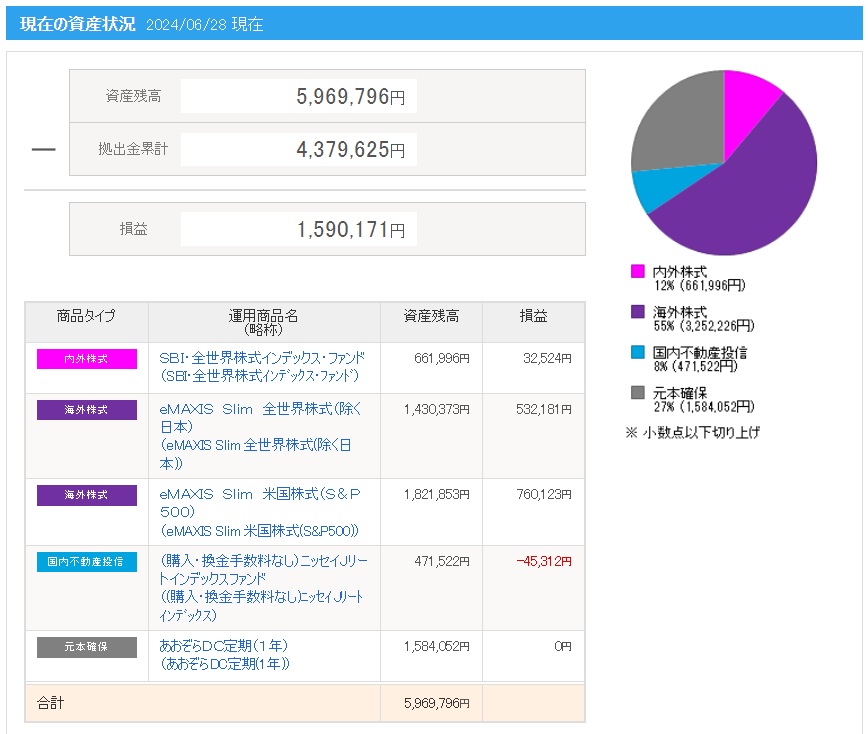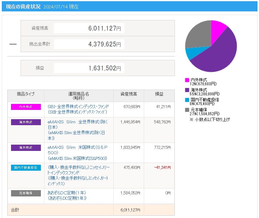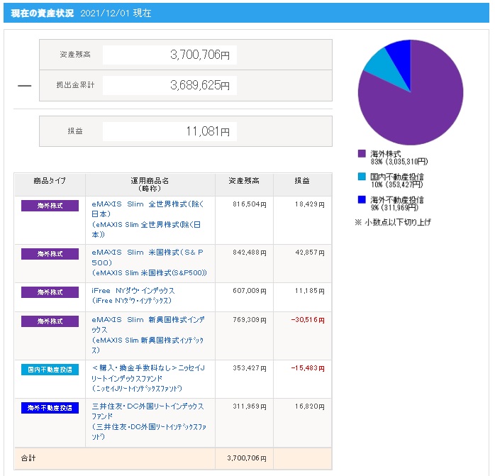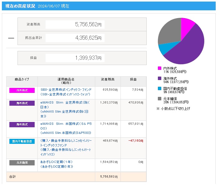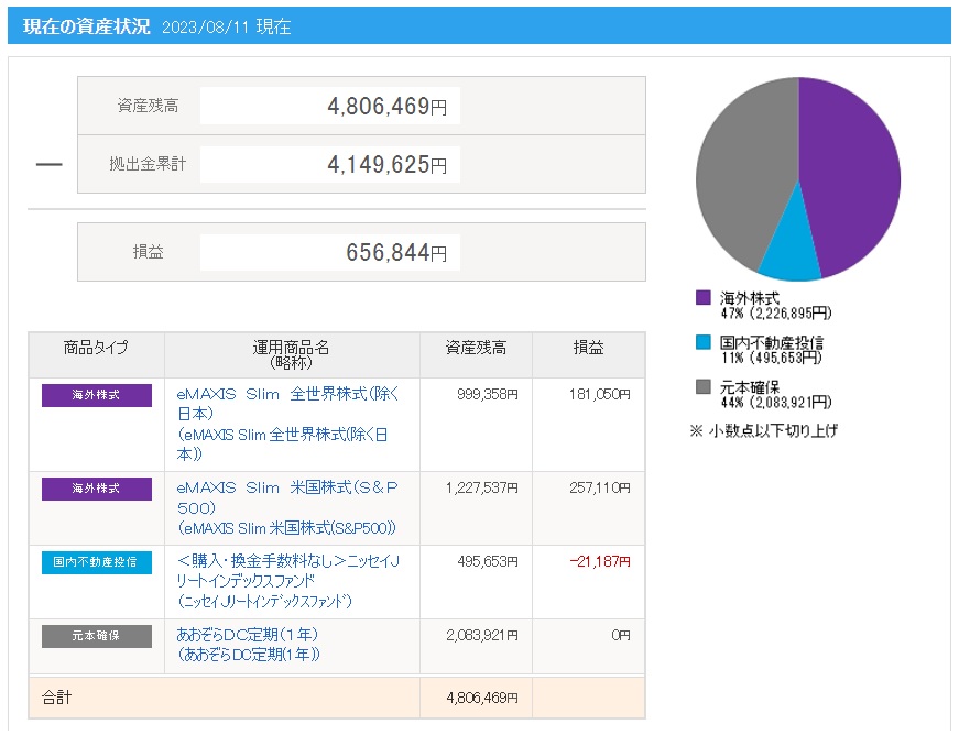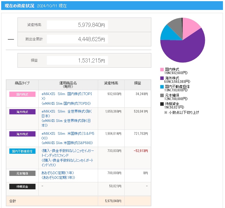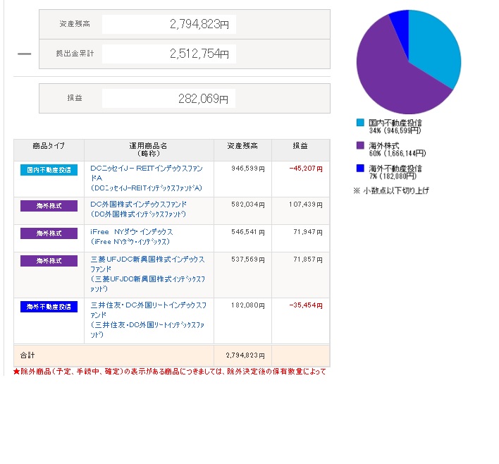 | 日付 | 拠出金額 | 資産残高 | 運用利益 | 損益率 |
