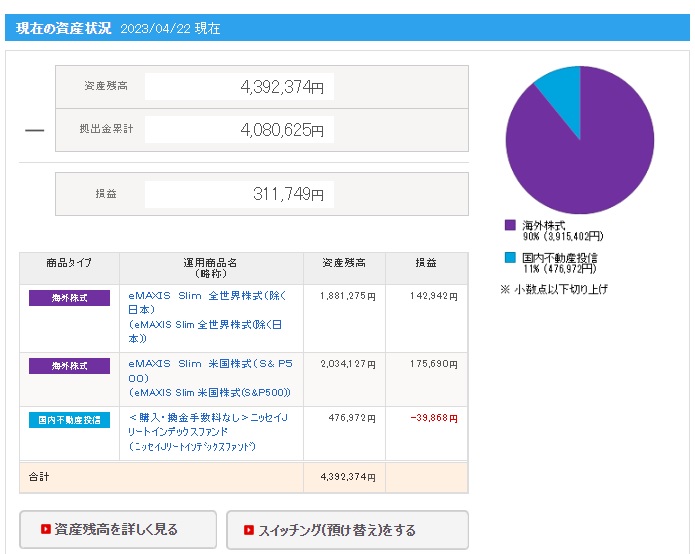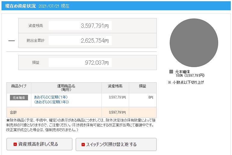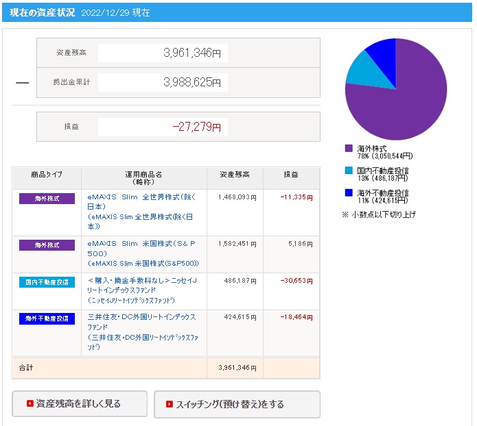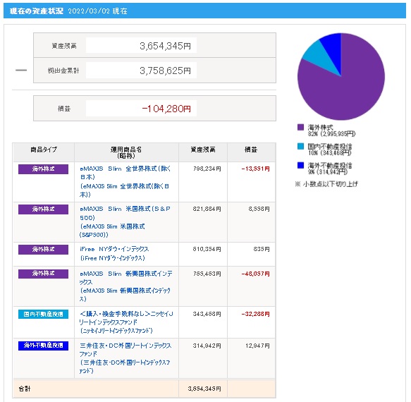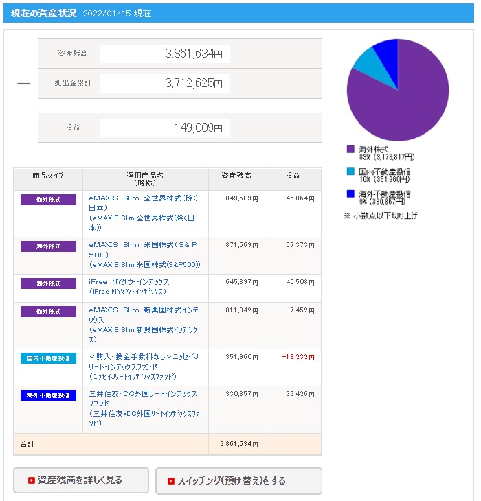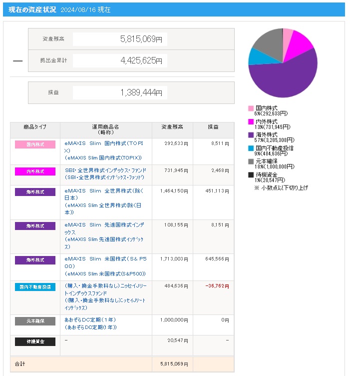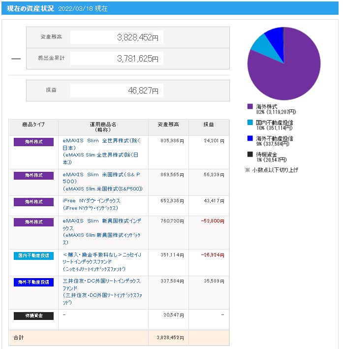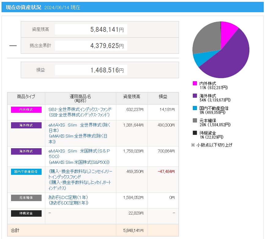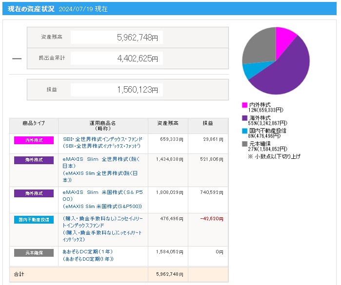 | 日付 | 拠出金額 | 資産残高 | 運用利益 | 損益率 |
