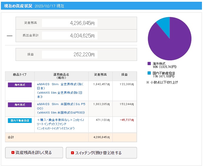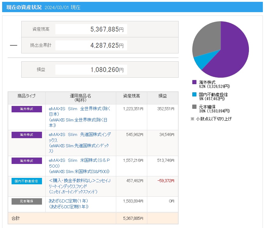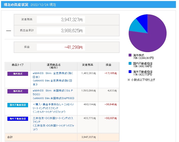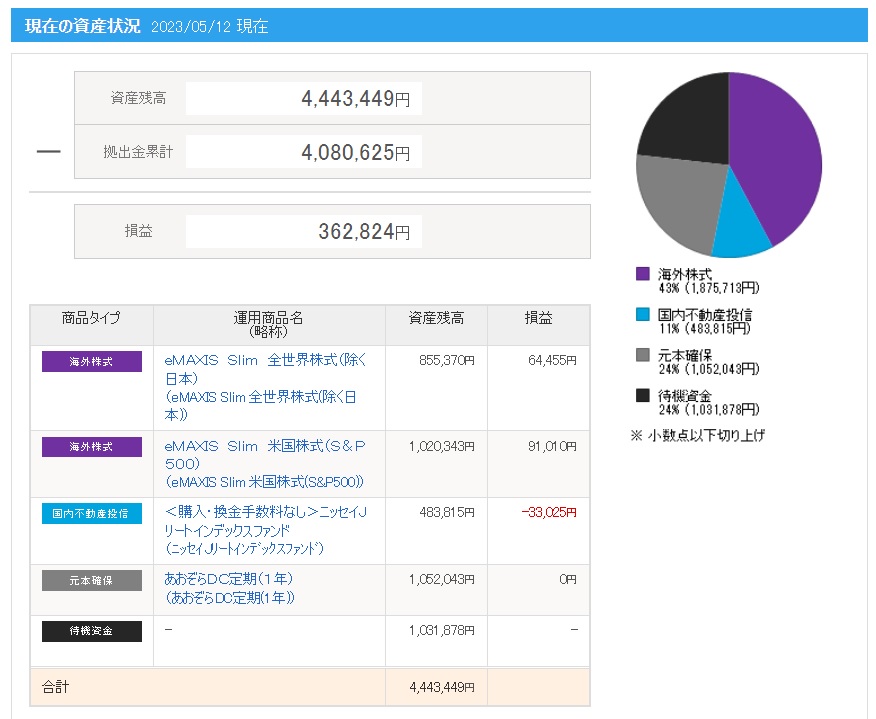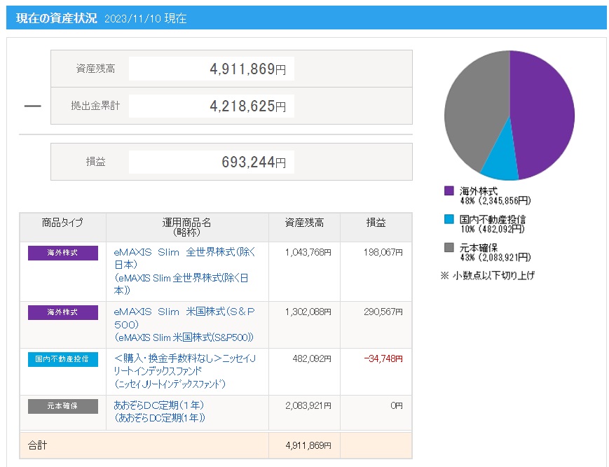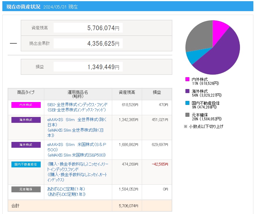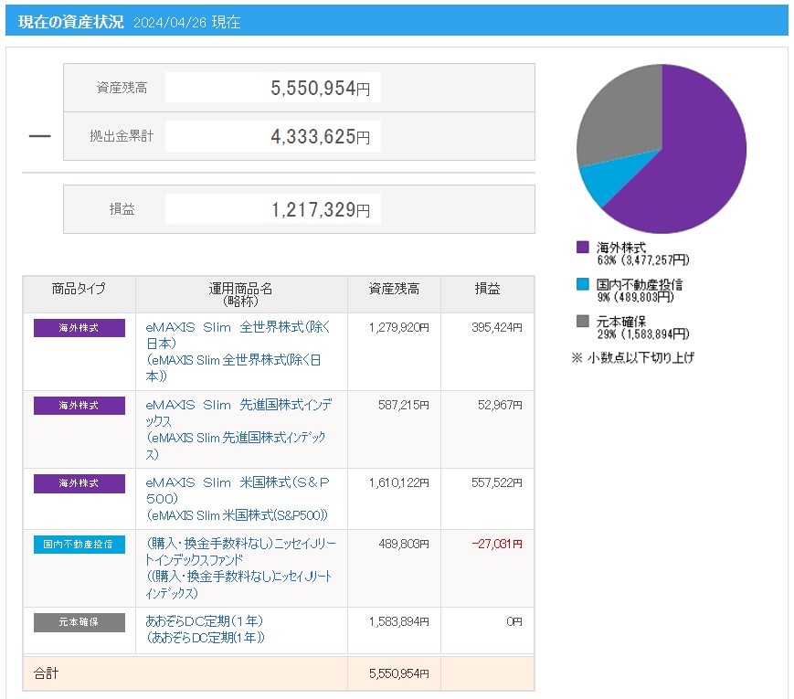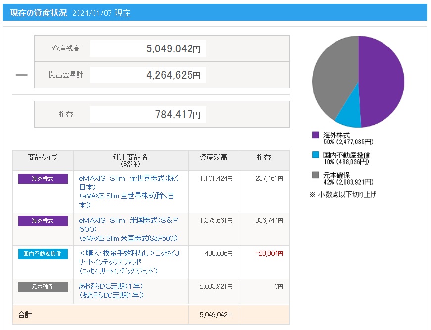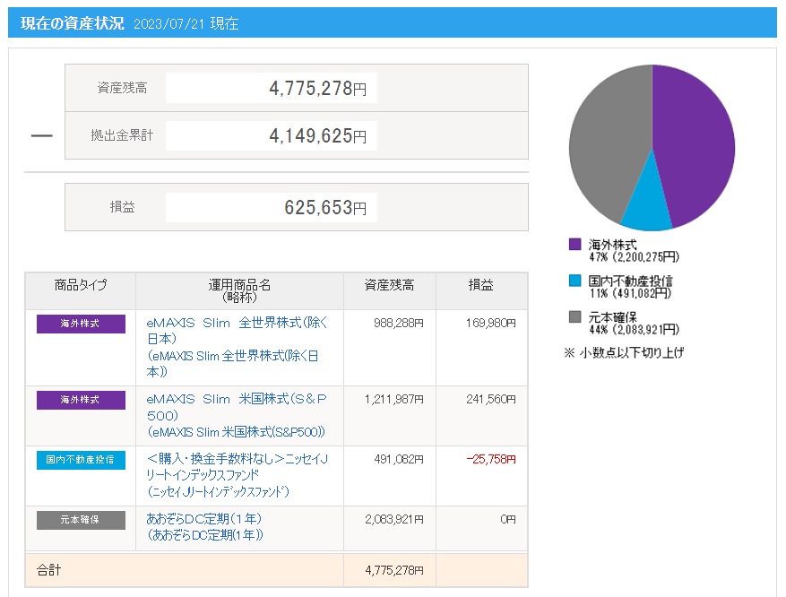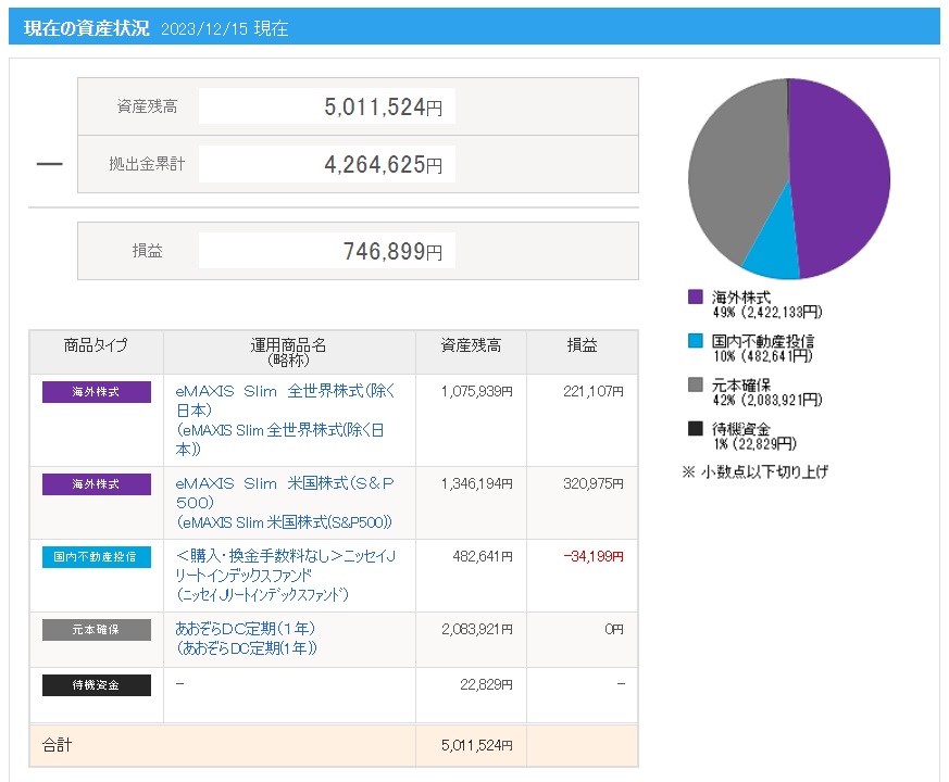 | 拠出金額 | 資産残高 | 運用利益 | 損益率 |