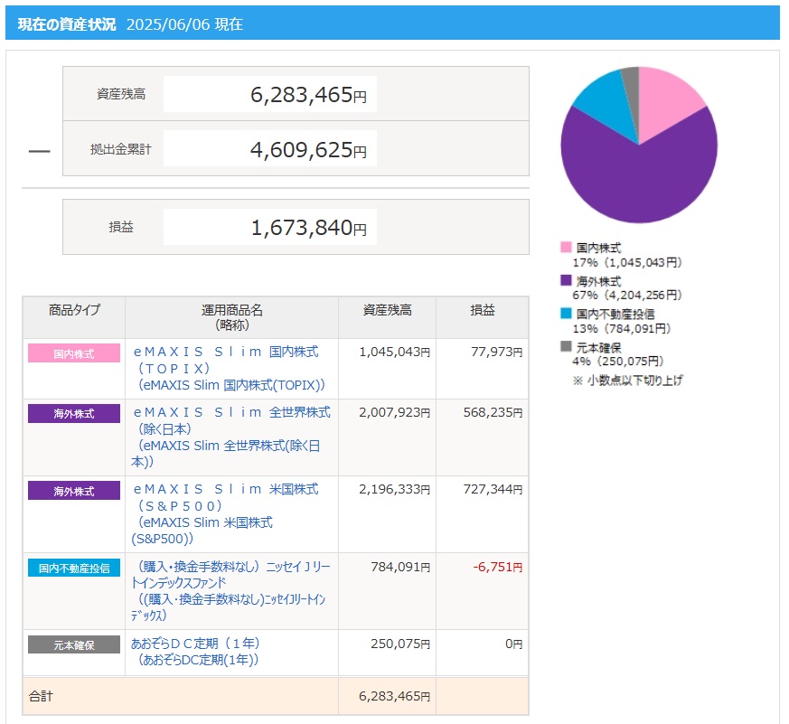 | 2025年6月6日 | 3,381,000円 | 6,283,465円 | +2,902,000円 | +85% |