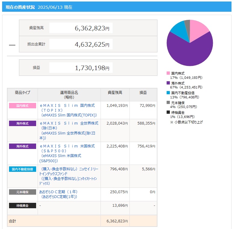 【iDeCo】2025年6月13日の最新実績画像は、下記リンクにUP済みです!