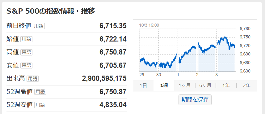 ・S&P500のチャート