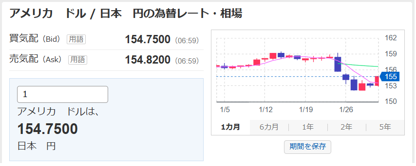※現在(1/30)は154円台くらい